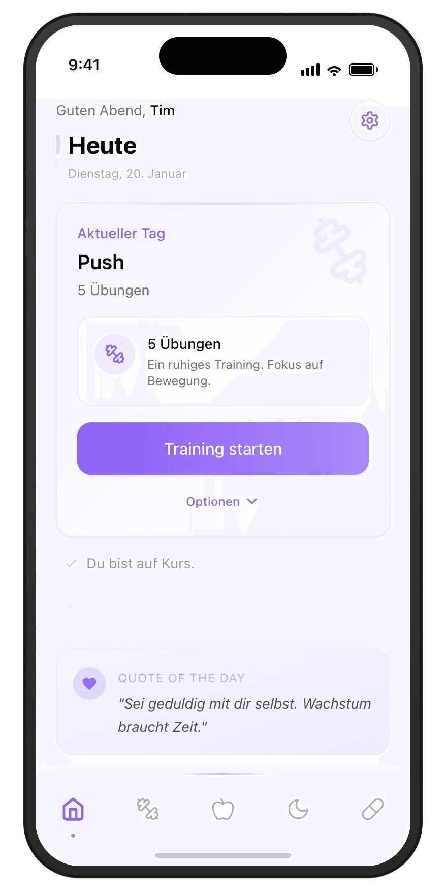 GymBuddy begleitet dich Schritt für Schritt beim Einstieg ins Fitnessstudio – ohne Überforderung, ohne Planlosigkeit.